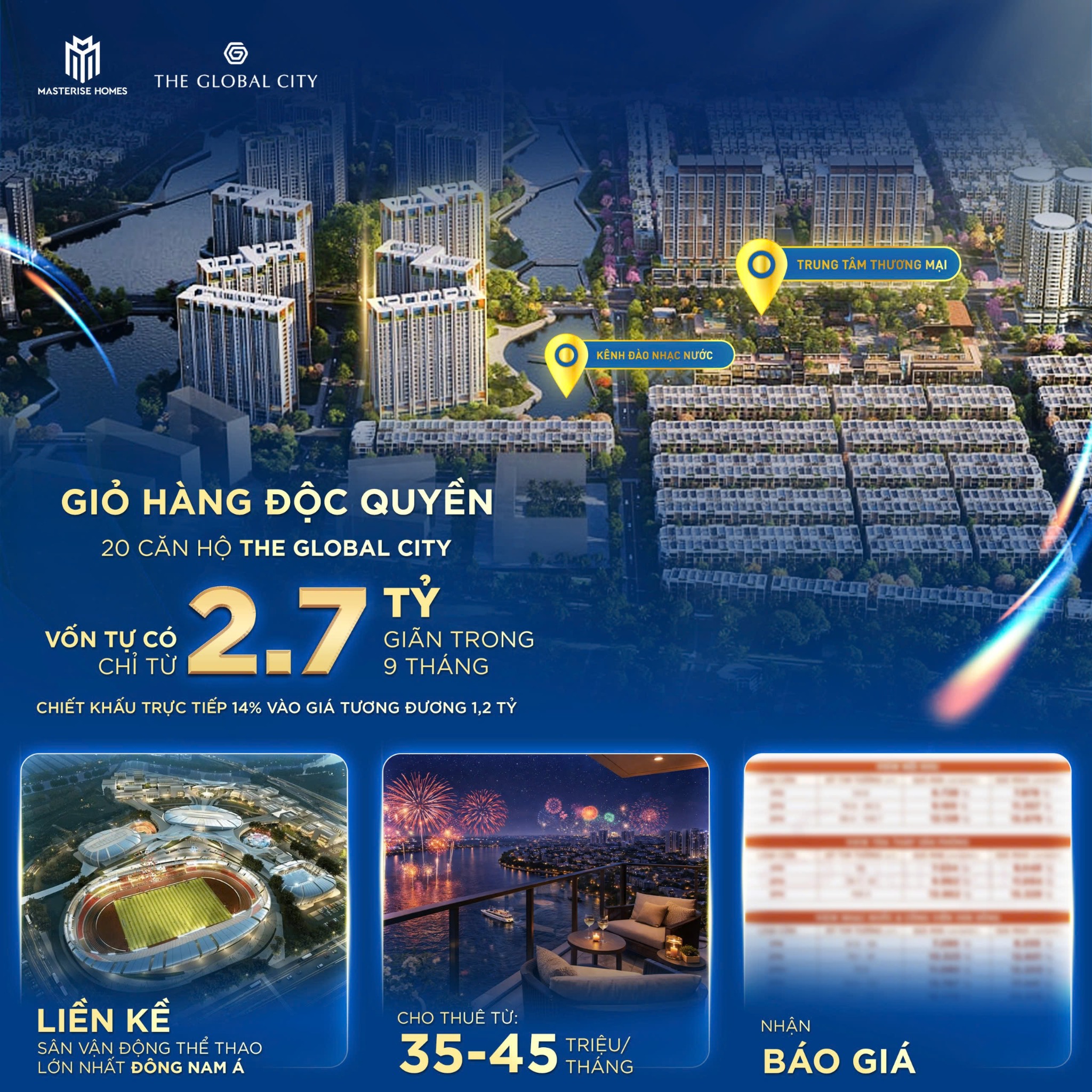 Với quy mô 117,4ha, The Global City sẽ trở thành một khu đô thị phức hợp hiện đại và đa dạng. Với hệ thống tiện ích toàn diện bên cạnh cụm căn hộ cao tầng và khu thấp tầng, biệt thự gồm: trường học, y tế và hành chính, trung tâm thương mại đẳng cấp 125.000m2… Và nhiều tiện nghi khác kiến tạo nên một “thành phố trung tâm” trong tương lai.