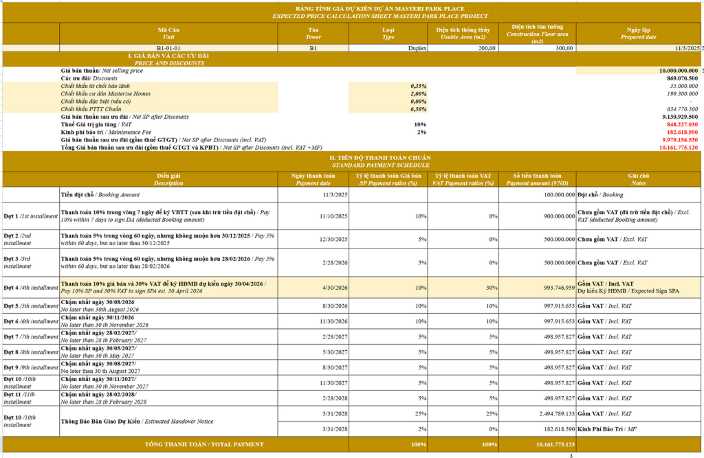 Theo quy định của CĐT nên chúng tôi chưa thể công khai đầy đủ bảng giá hiện tại lên cho quý anh chị tại website, rất mong quý khách thông cảm.