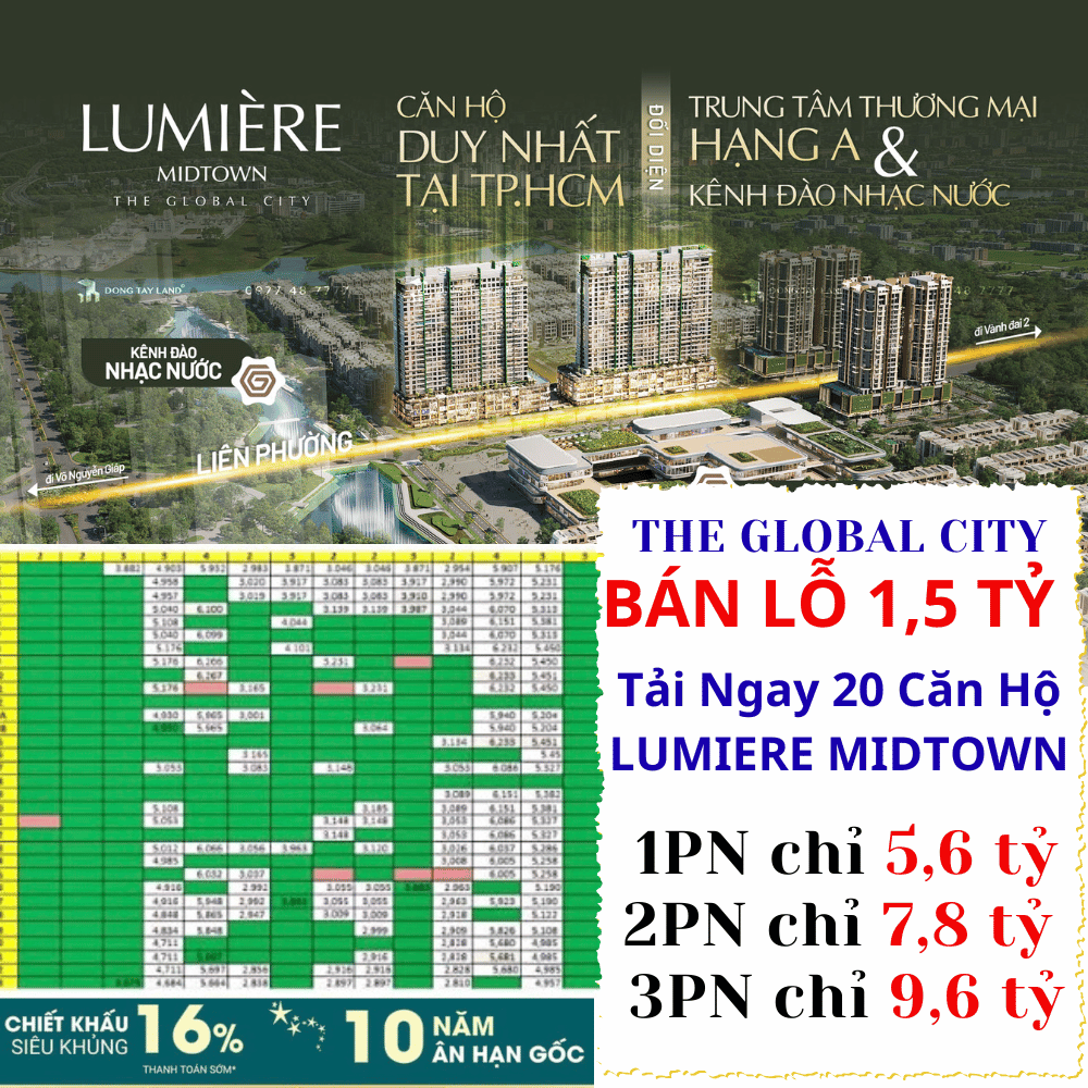 ⭐ TẢI NGAY GIỎ HÀNG 20 CĂN BÁN LỖ MẠNH LUMIERE MIDTOWN – THE GLOBAL CITY🌅 View sông – 🎶 view nhạc nước🌿 tinh tế – xanh mát – như resort giữa trung tâm