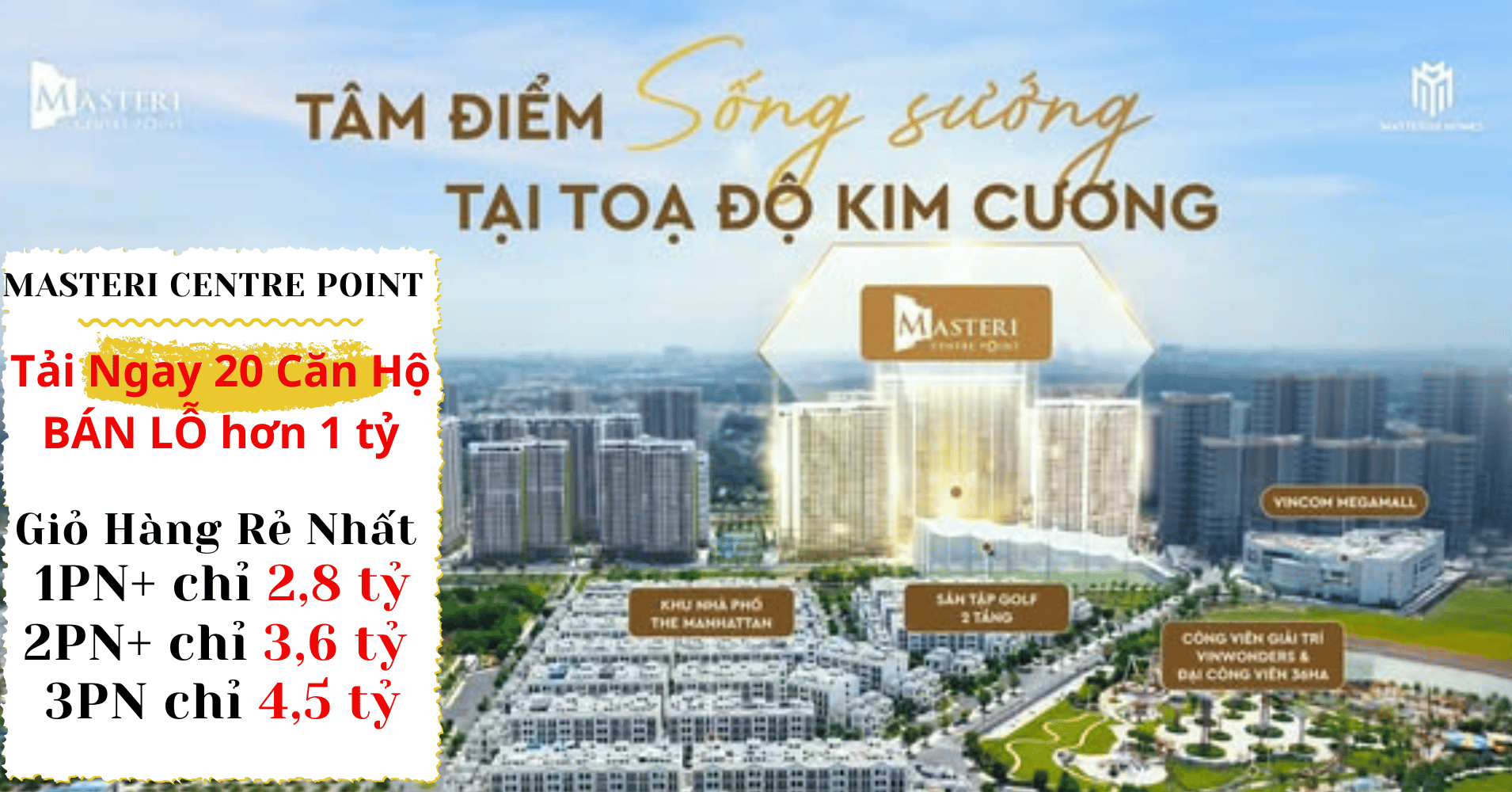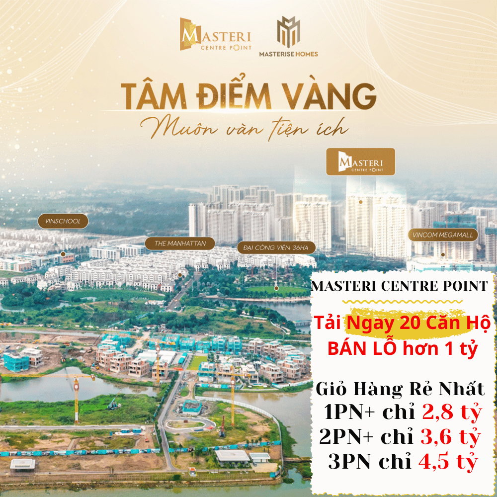 THANH TOÁN CHỈ 5% GIÁ TRỊ CĂN HỘ NHẬN NHÀ NGAY KHI MUA CĂN HỘ MASTERI CENTRE POINT - MASTERISE HOMES QUẬN 9